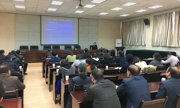 為深入開展“不忘初心、牢記使命”主題教育,進一步檢視問題、整改落實,11月11日上午,基建處以規(guī)范建筑工程合同管理為主題召開了集體培訓會。會議邀請西安建筑科技大學碩士生導師、新校區(qū)建設工程部總工程師徐雷教授擔任主講。我校副校長楊戰(zhàn)社,基本建設領導小組成員單位負責人參加講座。