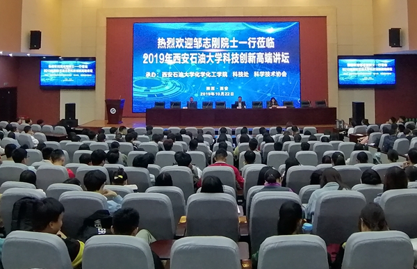 當(dāng)天下午,我??萍紕?chuàng)新高端講壇在鄠邑校區(qū)弘石報(bào)告廳舉辦,鄒志剛院士、周勇教授出席講壇,化學(xué)化工學(xué)院院長王文珍主持講壇,化學(xué)化工學(xué)院研究生、本科生共計(jì)400余人參加了講壇。鄒志剛院士從人類社會(huì)的能源需求、光催化材料、光催化反應(yīng)機(jī)理以及材料科學(xué)在氫能制備中面臨的機(jī)遇與挑戰(zhàn),為同學(xué)們介紹了光催化技術(shù)是未來的發(fā)展趨勢。南京大學(xué)周勇教授從溫室氣體造成的影響、CO?氣體排放治理和再生利用以及早期的研究工作三個(gè)方面,為同學(xué)們作了一場詳實(shí)嚴(yán)謹(jǐn)?shù)膱?bào)告。