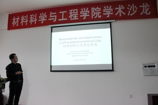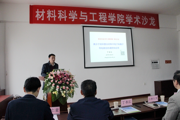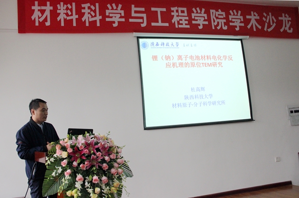 學術(shù)沙龍第一階段由宋海洋教授主持,西安交通大學教授、“教育部新世紀優(yōu)秀人才”丁書江作了題為“高分子/無機物納米復合材料中電子和離子導電路徑的調(diào)控和電化學性能研究”的報告;陜西科技大學特聘教授、“教育部新世紀優(yōu)秀人才”杜高輝作了題為“鋰(鈉)離子電池材料電化學反應機理的原位TEM研究”的報告;陜西師范大學教授、材料科學與工程學院副院長曾京輝作了題為“納米材料及其光電化學池應用”的報告。