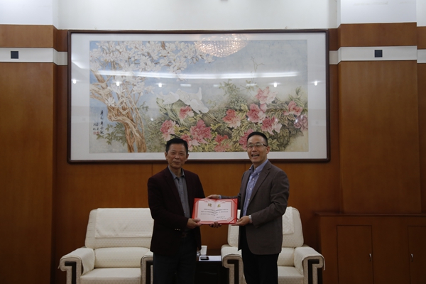 校黨委副書記雷西合對賴雄麟教授的到來表示歡迎,對賴教授受聘為我校兼職教授表示感謝,希望賴教授能進(jìn)一步提升我校馬克思主義學(xué)院的學(xué)科建設(shè)和教學(xué)科研水平,并為賴雄麟教授頒發(fā)了兼職教授聘書。