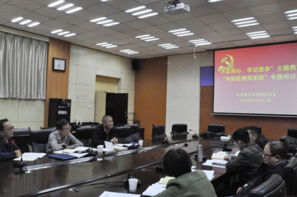 根據(jù)學(xué)院黨總支主題教育學(xué)習(xí)計(jì)劃安排,與會(huì)人員就第三個(gè)專題“對(duì)標(biāo)檢視找差距”進(jìn)行了交流研討。李淵書記講到,通過“不忘初心、牢記使命”主題教育,自身思想受到了洗禮并更加堅(jiān)定了理想信念,作為馬克思主義學(xué)院黨總支書記深感責(zé)任重大、任務(wù)艱巨,要帶好班子、帶好思政課教師隊(duì)伍,努力完成黨交給我們“立德樹人”的根本任務(wù)。結(jié)合前期調(diào)研情況,查找到自身還要很多需要提高的地方:一是對(duì)學(xué)院教師的成長(zhǎng)和關(guān)懷還不夠,要努力為青年教師搭建更多的交流平臺(tái)提供更多的學(xué)習(xí)機(jī)會(huì),在職稱評(píng)定、教學(xué)科研等方面為教師爭(zhēng)取更多的政策,更好的發(fā)揮教師的積極性、主動(dòng)性、創(chuàng)造性。二是對(duì)思政課教師的思想引領(lǐng)和政治教育還不夠,要努力以黨建工作為抓手,充分發(fā)揮黨員的示范引領(lǐng)作用,將集體備課會(huì)與主題教育學(xué)習(xí)活動(dòng)相融合,加強(qiáng)師德師風(fēng)建設(shè),切實(shí)提升思政課教師的業(yè)務(wù)能力、授課水平,努力做到習(xí)近平總書記對(duì)思政課教師政治要強(qiáng)、情懷要深、思維要新、視野要廣、自律要嚴(yán)、人格要正的要求,為學(xué)生奉獻(xiàn)“精彩一課”。肖發(fā)榮副院長(zhǎng)從三方面談了體會(huì),一是通過主題教育集中學(xué)習(xí)和個(gè)人自學(xué),真正做到了理論學(xué)習(xí)有收獲、思想政治受洗禮,對(duì)自身有很大提升。二是通過調(diào)研活動(dòng),了解全校本、碩、博學(xué)生對(duì)思政課教學(xué)的意見,發(fā)現(xiàn)問題,找出差距,為下一步整改落實(shí)提供了依據(jù)和參考。打鐵還需自身硬,作為一名思政課教師要高標(biāo)準(zhǔn)、嚴(yán)要求,不斷提高自己的理論水平和教學(xué)水平,在抓好學(xué)生課堂教學(xué)的同時(shí),還要積極參與理論宣講等社會(huì)服務(wù)活動(dòng)。作為主管教學(xué)的副院長(zhǎng),要努力推動(dòng)思政課改革創(chuàng)新,不斷增強(qiáng)思政課的思想性、理論性、親和力和針對(duì)性。三是要將主題教育學(xué)習(xí)落到實(shí)處,切實(shí)做到情系師生解難題。與會(huì)教工黨支書記潘景余、孫一仰老師也分別作了交流發(fā)言,他們談到思政課教師首先要堅(jiān)持學(xué)習(xí),不斷提升自身的理論水平,多在課堂教學(xué)上下功夫,提升教學(xué)質(zhì)量,更好的用習(xí)近平新時(shí)代中國特色社會(huì)主義思想鑄魂育人。
