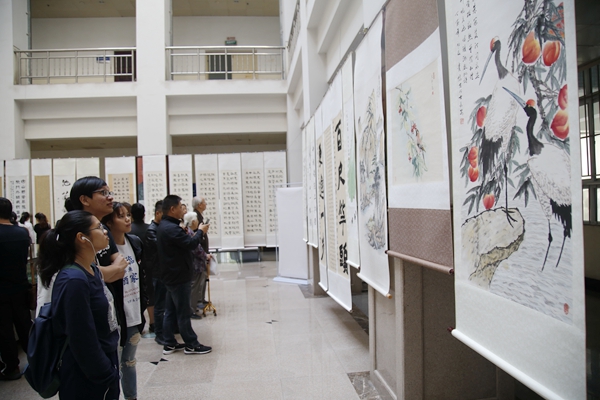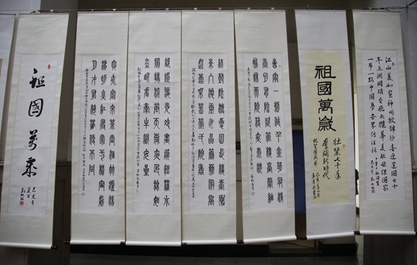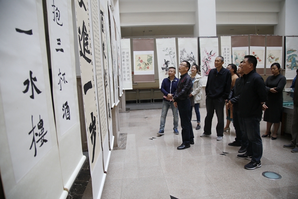 此次展覽匯集了我校10余名書畫愛好者精心創(chuàng)作的60余幅書畫作品。創(chuàng)作者以手中的畫筆熱情贊頌偉大祖國的光輝成就,真情書寫新中國成立70年的偉大歷程。觀眾也被一幅幅精美的書畫作品深深吸引,一起祝福偉大祖國繁榮昌盛。