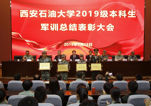 9月15日上午,我校2019級本科生軍訓(xùn)總結(jié)表彰大會在鄠邑校區(qū)弘石學(xué)術(shù)報告廳召開。校黨政領(lǐng)導(dǎo)李天太、張木、陳軍斌、樊曉民,軍訓(xùn)旅旅長田偉利少校、參謀長蔣澤斌上尉出席大會。相關(guān)部門負(fù)責(zé)人,全體參訓(xùn)干部、教官代表以及2019級學(xué)生代表共400余人參加大會。