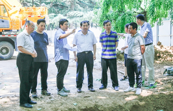 7月25日上午,校長李天太、校黨委副書記張木在黨政辦公室、保衛(wèi)部(處)、基建處、后勤管理處以及施工方相關(guān)負責人的陪同下巡視檢查了雁塔校區(qū)部分區(qū)域“海綿化”改造施工進展情況。