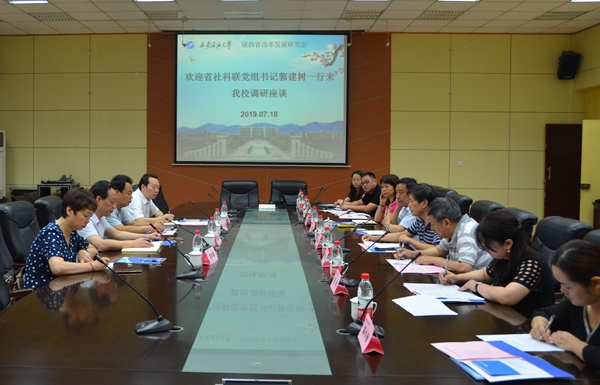 7月18日上午,陜西省社會(huì)科學(xué)聯(lián)合會(huì)黨組書記郭建樹、副主席張雄一行來(lái)我校調(diào)研。省社科聯(lián)學(xué)會(huì)部部長(zhǎng)梁亞娟、省社科聯(lián)辦公室副主任翟金榮陪同調(diào)研。座談會(huì)在雁塔校區(qū)第一會(huì)議室召開。我校副校長(zhǎng)、校社科聯(lián)常務(wù)副主席楊戰(zhàn)社,經(jīng)濟(jì)管理學(xué)院負(fù)責(zé)人以及陜西省改革發(fā)展研究會(huì)相關(guān)人員參加座談會(huì)。