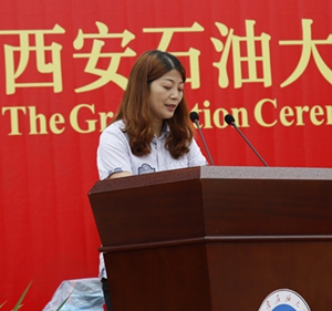 陜西省青年科技新星、校青年拔尖人才、校級優(yōu)秀教師、機(jī)械工程學(xué)院崔璐教授代表全體教師向畢業(yè)生贈言。她希望同學(xué)們一是要心中有愛,以真誠呼喚真誠,用愛心傳遞愛心;二是要保持樂觀堅(jiān)強(qiáng)的心態(tài),堅(jiān)信陽光總在風(fēng)雨后;三是要堅(jiān)持初心,守住底線,勿以善小而不為,勿以惡小而為之。