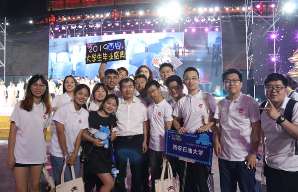6月25日晚,由西安市委、市政府主辦的“愛上大西安 畢業(yè)不別離”2019西安大學生畢業(yè)盛典在城墻永寧門華彩綻放。西安市委副書記、市長李明遠出席。我校李天太校長和15名畢業(yè)生代表受邀參加活動。