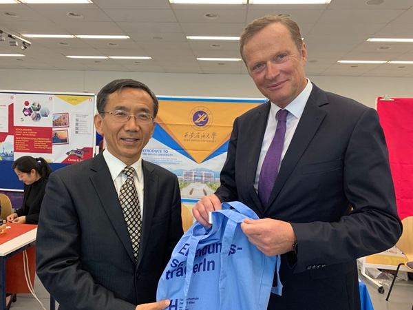 5月31日,奧地利“留學(xué)中國”教育展開幕,各院校代表及中奧觀眾百余人參加開幕式。參展期間,張木副書記一行訪問了維也納應(yīng)用技術(shù)大學(xué),并與該校校長Andreas Breinbauer先生、中國駐奧地利大使館教育處負(fù)責(zé)人周志強(qiáng)教授等進(jìn)行了交流。6月1日,訪問團(tuán)一行參觀訪問了奧地利維也納大學(xué)。