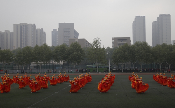 運(yùn)動(dòng)會(huì)入場式隆重?zé)崃?,國旗、校旗方陣之后是各單位教職工代表?duì),他們步伐矯健、精神抖擻地通過了主席臺(tái),充分展現(xiàn)了我校教職工團(tuán)結(jié)奮進(jìn)、追趕超越的精神風(fēng)貌。大型團(tuán)體舞表演《我和我的祖國》更給開幕式增添了靚麗的風(fēng)采,我校教職工舞蹈協(xié)會(huì)老師們的表演,舞姿曼妙,神采飛揚(yáng),動(dòng)作整齊,編排新穎,贏得了觀眾的陣陣喝彩。臺(tái)上臺(tái)下舞者與觀眾互動(dòng),歌聲伴著手中的五星紅旗把開幕式推向了高潮。