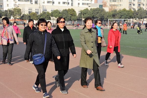 離退休黨員健步走活動的比賽規(guī)則是:80周歲及以上年齡段的老同志繞田徑場一周,限時10分鐘以內(nèi)完成。70至79周歲的老同志男、女分組,繞田徑場兩周,在15分鐘以內(nèi)完成。70周歲以下的老同志男、女分組,繞田徑場三周,在20分鐘內(nèi)完成。盡管很多老同志年事已高,腿腳也不是很靈活,有些還拄著拐杖,但是大家精神抖擻,一路上有說有笑,三三兩兩結(jié)伴而行,向著終點努力進發(fā)。