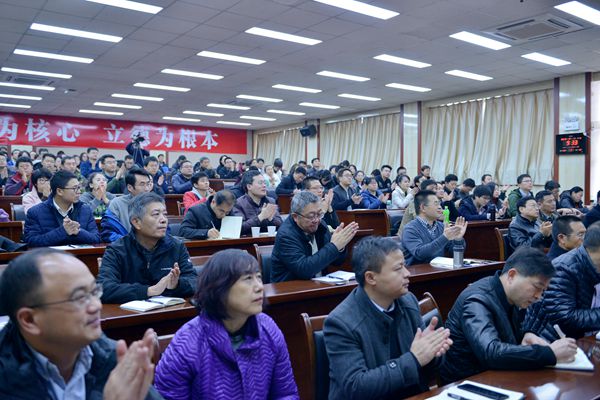 12月7日, “時代楷?!?、“全國師德標(biāo)兵”、“全國優(yōu)秀教師”曲建武教授應(yīng)邀來校作《做大學(xué)生人生成長的指導(dǎo)者和引路人》專題報告。報告會由黨委宣傳部和學(xué)工部共同組織,校黨委副書記張木主持,全校各院系書記、副書記、輔導(dǎo)員,學(xué)生工作部、校團委全體工作人員和馬克思主義學(xué)院教師參加了報告會。