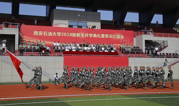 李天太校長(zhǎng)在大會(huì)上作了致辭。他首先對(duì)2018級(jí)新生們表示熱烈歡迎,對(duì)他們圓滿完成軍訓(xùn)任務(wù)表示誠(chéng)摯祝賀,對(duì)全體教官和參訓(xùn)老師表示親切慰問(wèn)。隨后,他通過(guò)發(fā)展歷史、辦學(xué)特色、人才培養(yǎng)、杰出校友等方面,對(duì)西安石油大學(xué)的基本情況作了介紹,使新生們對(duì)學(xué)校有了初步的了解。他還對(duì)新生們提出了幾點(diǎn)要求:一是在奮斗中成就精彩人生,必須要修身立德,把握人生方向;二是在奮斗中成就精彩人生,必須要勤奮好學(xué),拓展眼界視野;三是在奮斗中成就精彩人生,必須要勇于挑戰(zhàn),培養(yǎng)創(chuàng)新能力。李校長(zhǎng)最后對(duì)“好學(xué)力行、自強(qiáng)不息”的校訓(xùn)作了解讀:“勤奮好學(xué)以啟迪智慧、身體力行以勇攀高峰、自強(qiáng)不息以砥礪品行”,他期待同學(xué)們以?shī)^斗的最美姿態(tài),贏得新的更大的榮光。