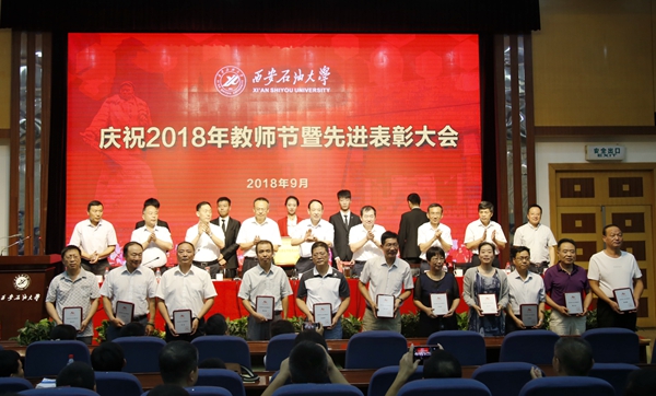 會上,校黨委書記賽云秀宣讀了《西安石油大學(xué)關(guān)于表彰獎勵“教書育人30年”教師的決定》和榮獲2018年陜西省師德建設(shè)先進集體和師德先進個人名單;紀(jì)委書記李延平宣讀了榮獲2017年省部級科技成果獎勵項目名單和2018年“陜西省教學(xué)名師”教師名單;校黨委副書記張木宣讀了榮獲2017年陜西省高等教育教學(xué)成果獎獲獎名單和2017年中國石油教育學(xué)會高等教育教學(xué)成果獎獲獎名單;校黨委副書記雷西合宣讀了《中共陜西省委高教工委關(guān)于表彰全省高校先進基層黨組織、優(yōu)秀共產(chǎn)黨員和優(yōu)秀黨務(wù)工作者的決定》;副校長楊戰(zhàn)社宣讀榮獲2017年陜西省“特支計劃”教師名單;副校長陳軍斌宣讀了榮獲2017年“全國高校思想政治理論課教學(xué)骨干”稱號教師名單、陜西高等學(xué)校第四屆青年教師教學(xué)競賽獲獎名單和《中共西安石油大學(xué)委員會關(guān)于表彰先進黨組織、優(yōu)秀黨務(wù)工作者、優(yōu)秀黨支部書記和優(yōu)秀共產(chǎn)黨員的決定》;副校長李華宣讀了《中共西安石油大學(xué)委員會、西安石油大學(xué)關(guān)于表彰2018年優(yōu)秀教師、先進教育工作者的決定》和《中共西安石油大學(xué)委員會、西安石油大學(xué)關(guān)于表彰2018年師德建設(shè)先進集體和師德先進個人的決定》;“弘石”基金委員會副理事長何力宣讀了2017年度“弘石基金獎”獲獎教師名單。校領(lǐng)導(dǎo)為受表彰的先進集體和個人頒獎。