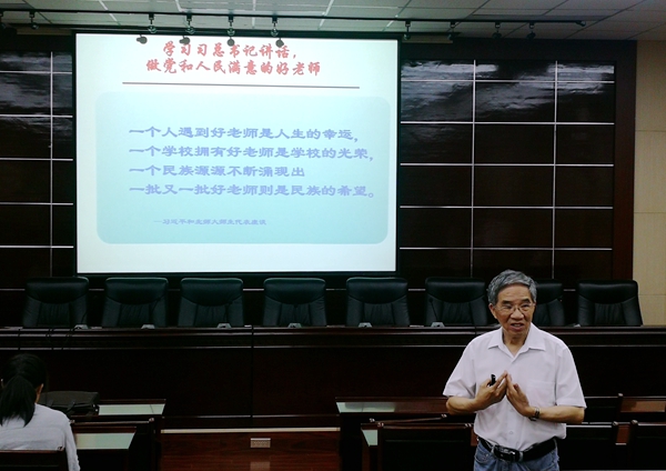 國家級教學(xué)名師、西安交通大學(xué)馮博琴教授作了題為《淺談?wù)局v臺的責(zé)任和藝術(shù)》的講座。他表示,我們廣大教師要學(xué)習(xí)習(xí)近平總書記講話,做黨和人民滿意的好老師。教師要以為人師表、教書育人為本,在課堂教學(xué)中要著重培養(yǎng)學(xué)生的創(chuàng)新精神、提高學(xué)生的能力和素質(zhì)。馮博琴教授還就當(dāng)前大學(xué)教育教學(xué)的現(xiàn)狀和存在問題、發(fā)展趨勢分享了自己從教五十多年來所積累的教學(xué)經(jīng)驗和感悟。他建議大家要深入學(xué)習(xí),注重領(lǐng)域知識更新和實踐教學(xué),加強科學(xué)研究提高教學(xué)水平,增加學(xué)術(shù)厚度加強表達能力,深入淺出地表達好概念。要以站好講臺為天職,把講臺當(dāng)作教書育人、為人師表的舞臺。
