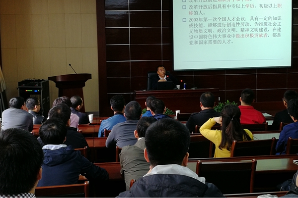 教務(wù)處、科技處、人事處主要負責人分別介紹了學(xué)校教學(xué)、科研、人事等方面的基本情況及相關(guān)制度政策,對科研管理、教學(xué)管理、人事考評體系、工資待遇、自身發(fā)展等方面的問題進行了詳細解讀,并結(jié)合自身職業(yè)成長進行了深入交流,希望新入職教師要以人民教師的標準嚴格要求和規(guī)范自己的言行,主動適應(yīng)學(xué)校環(huán)境,盡快融入教學(xué)科研團隊,全身心投入到教學(xué)科研工作中,努力做習(xí)近平總書記要求的“有理想信念、有道德情操、有扎實知識、有仁愛之心”的“四有”好老師。