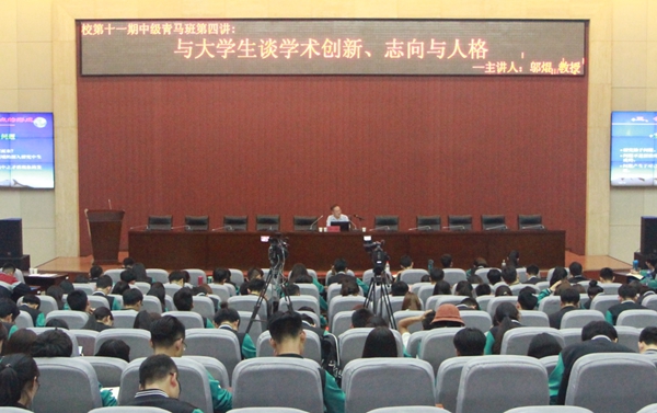 5月15日晚,由校團(tuán)委舉辦的“第十一期中級(jí)青年馬克思主義者干部培訓(xùn)班”第四講在鄠邑校區(qū)弘石學(xué)術(shù)報(bào)告廳舉辦。應(yīng)我校黨委宣傳部邀請(qǐng),西安交通大學(xué)國(guó)際信息哲學(xué)研究中心主任、人文社會(huì)科學(xué)學(xué)院二級(jí)教授、博士生導(dǎo)師鄔焜教授作了題為《與大學(xué)生談學(xué)術(shù)創(chuàng)新、志向與人格》的講座,中級(jí)青年馬克思主義者干部培訓(xùn)班學(xué)員300余人參加了講座。