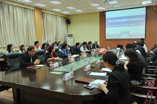 19日下午,雙方在我校雁塔校區(qū)會議中心第一會議室召開合作座談會,陳軍斌副校長主持。國際教育學院負責人介紹了我校的國際化發(fā)展及國際教育情況。隨后,雙方著重就在泰共建國際教育基地、來華留學專業(yè)需求、本科及研究生培養(yǎng)情況、漢語教學管理、教師交流、學生錄取等議題進行了深入交流,并對下一步的合作達成了初步意向。