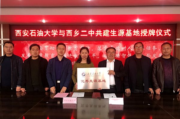 326日上午,學(xué)生心理成長(zhǎng)指導(dǎo)中心主任、馬克思主義學(xué)院副院長(zhǎng)肖瓊,教務(wù)處招生辦公室主任陳熙等一行3人赴漢中市西鄉(xiāng)縣第二中學(xué)舉行“西安石油大學(xué)優(yōu)秀生源基地”簽約授牌儀式,并作專題報(bào)告。中學(xué)校長(zhǎng)袁寶平參加了授牌儀式。