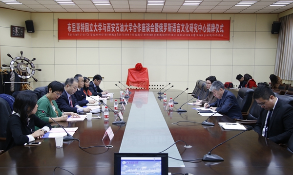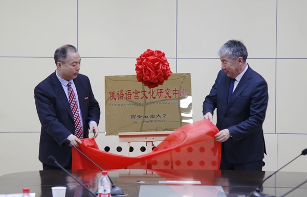 哈辛諾夫副校長(zhǎng)在致辭中感謝西安石油大學(xué)精心組織的接待工作,并簡(jiǎn)要介紹了布里亞特國(guó)立大學(xué)的基本情況。隨后,陳軍斌副校長(zhǎng)和哈辛諾夫副校長(zhǎng)共同為俄羅斯語言文化研究中心揭牌。
