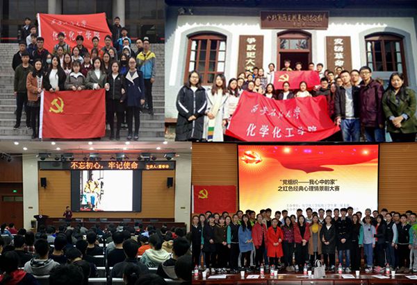 ——為慶祝中國共產(chǎn)黨第十九次全國代表大會(huì)勝利召開,學(xué)院各學(xué)生黨支部結(jié)合學(xué)生喜聞樂見的形式,舉辦了多場(chǎng)系列專題活動(dòng)。11月13日,學(xué)院在鄠邑校區(qū)B105教室舉行了以“端正入黨動(dòng)機(jī),做合格黨員”為主題的討論活動(dòng),學(xué)院輔導(dǎo)員屈敏佳及學(xué)院全體黨員發(fā)展對(duì)象參加了討論活動(dòng);11月17日上午,在學(xué)院環(huán)境能化學(xué)生黨支部書記楊夢(mèng)琳老師帶領(lǐng)下,學(xué)院組織30余名學(xué)生黨員參觀了陜西省歷史博物館;11月21日上午,在學(xué)院化工學(xué)生第一黨支部書記屈敏佳老師帶領(lǐng)下,學(xué)院組織30余名學(xué)生黨員參觀了八路軍西安辦事處紀(jì)念館;11月27日晚,學(xué)院邀請(qǐng)經(jīng)濟(jì)管理學(xué)院經(jīng)濟(jì)系教工黨支部書記董春詩為學(xué)院學(xué)生作了“不忘初心、牢記使命”的專題講座;11月29日晚,學(xué)院在鄠邑校區(qū)人文經(jīng)管樓118舉辦了以“黨組織——我心中的家”為主題的紅色經(jīng)典心理情景劇比賽,由學(xué)院各學(xué)生黨支部組織的7支參賽隊(duì)伍參加了比賽,經(jīng)過全場(chǎng)比賽,最終評(píng)選出一等獎(jiǎng)1名、二等獎(jiǎng)2名、三等獎(jiǎng)2名、優(yōu)秀獎(jiǎng)2名。