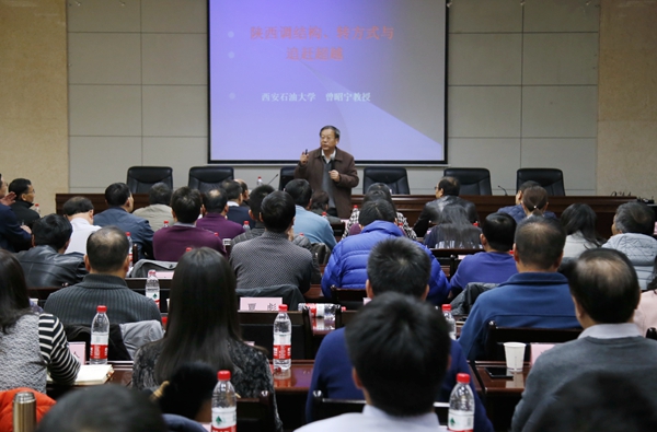 11月30日下午,我校“深入學(xué)習(xí)黨的十九大精神,全面提升能力素質(zhì)”處級干部專題培訓(xùn)班第五講在雁塔校區(qū)會議中心第三會議室舉辦。我校經(jīng)濟(jì)管理學(xué)院曾昭寧教授應(yīng)邀作了題為《陜西調(diào)結(jié)構(gòu)轉(zhuǎn)方式與追趕超越》的專題輔導(dǎo)報(bào)告。校黨委副書記張木、全校處級干部參加了報(bào)告會。報(bào)告會由校黨委委員、黨委組織部部長常青林主持。
