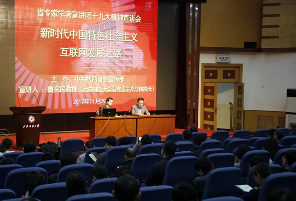 11月29日下午,我校在雁塔校區(qū)學術報告廳舉辦了省專家學者宣講團黨的十九大精神宣講會。省專家學者宣講團成員、西安理工大學馬克思主義學院院長魯寬民教授擔任主講。校黨委理論中心組成員、全校處科級干部、教工黨支部書記、馬克思主義學院教師、大學生思想政治輔導員參加宣講會。校黨委副書記雷西合主持會議。