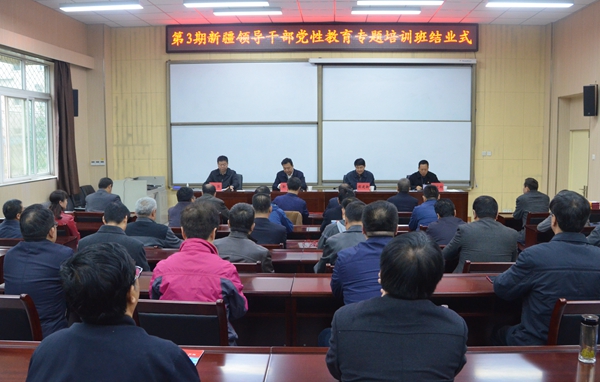 10月31日上午,由中國延安干部學院主辦的“第3期新疆領導干部黨性教育專題培訓班”在我校明德校區(qū)培訓中心順利結業(yè)。中國延安干部學院副院長靳銘出席并講話。中國延安干部學院培訓部學員二處處長楊文翔主持結業(yè)式。38名來自全疆黨政機關的廳、處級領導干部學員參加結業(yè)式。
