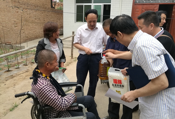 學(xué)校黨政辦、宣傳部、校工會(huì)負(fù)責(zé)人,學(xué)校扶貧工作隊(duì)、堅(jiān)固村干部陪同走訪慰問。