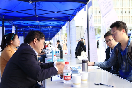 4月21日,我校2017屆畢業(yè)生第四場綜合招聘會在新校區(qū)圖書館南廣場舉行。中化石油浙江有限公司、中石化河南油建工程有限公司、陜西東嶺集團、中石化第四建設有限公司等150余家單位、300余名代表參會,我校及兄弟院校畢業(yè)生共2000余人參加了招聘會。
