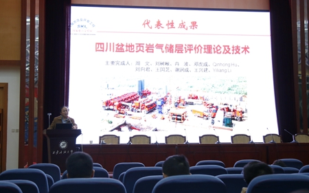 報(bào)告中,周文教授緊密圍繞近年來在四川盆地頁巖氣儲(chǔ)層評(píng)價(jià)理論與技術(shù)領(lǐng)域的主要?jiǎng)?chuàng)新性成果展開講解。他通過海量數(shù)據(jù)分析引出具體科學(xué)問題,再用嚴(yán)謹(jǐn)求實(shí)的科學(xué)態(tài)度與在場(chǎng)師生共同分享了科研團(tuán)隊(duì)經(jīng)過長期攻關(guān)研究,所建立的頁巖氣儲(chǔ)層孔隙構(gòu)造表征理論模型、有機(jī)孔隙與熱演化程度的關(guān)系、頁巖氣微孔隙中氣-水分布理論模型,提出了“排烴作用”差異是制約奧陶-志留系五峰-龍馬溪與寒武系笻竹寺組/牛蹄塘組含氣性差異的關(guān)鍵因素;建立了“基于電子顯微圖像的頁巖氣儲(chǔ)層微-納米級(jí)孔隙參數(shù)統(tǒng)計(jì)技術(shù)”和“基于孔徑界線的頁巖氣儲(chǔ)層-納米孔隙體系孔結(jié)構(gòu)的定量表征技術(shù)”。周教授的報(bào)告內(nèi)容豐富詳實(shí)、圖文并茂、形象直觀,使在場(chǎng)聽眾受益良多。
