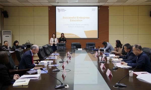 屈展校長對邁克·莫蘭副校長一行來校訪問表示歡迎,并向來賓介紹了我校的發(fā)展歷史和基本概況,著重介紹了辦學特色、國際交流、學生類別、專業(yè)設置等方面情況。他表示,期待與倫敦南岸大學在簽署合作協議的基礎上,從商科合作起步,不斷拓展兩校之間的合作領域。