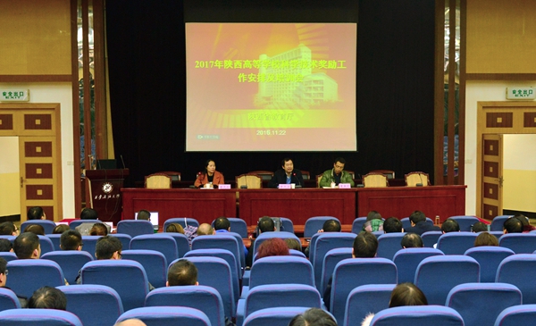 11月22日下午,由陜西省教育廳科技處主辦的2017年陜西高等學(xué)??茖W(xué)技術(shù)獎(jiǎng)勵(lì)工作安排及培訓(xùn)會(huì)在我校本部學(xué)術(shù)報(bào)告廳召開(kāi),來(lái)自西安交通大學(xué)、西北工業(yè)大學(xué)等全省74家高校的130余人參會(huì)。我校副校長(zhǎng)李天太,科技處、各院(部、系)負(fù)責(zé)人及相關(guān)教師參加了會(huì)議。省教育廳科技處副處長(zhǎng)秦天紅主持會(huì)議。
