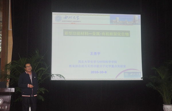 聘任儀式結(jié)束后,王堯宇教授在學(xué)術(shù)報告廳為化學(xué)化工學(xué)院師生作了題為《新型功能材料——金屬/有機框架化合物》的學(xué)術(shù)講座。