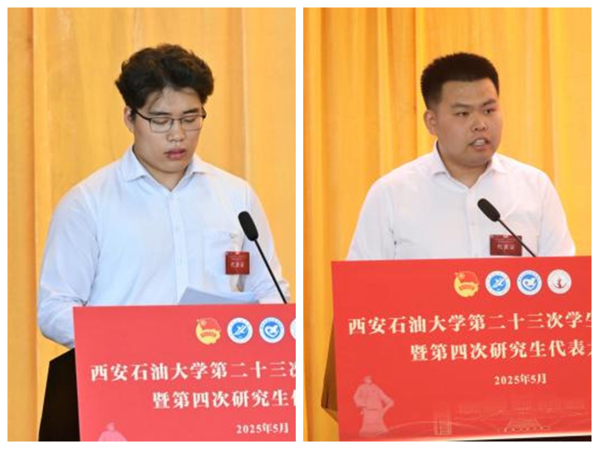 第二十二屆學(xué)生會執(zhí)行主席鄭楊博作了題為《砥礪奮進新時代 挺膺擔(dān)當(dāng)新征程 團結(jié)帶領(lǐng)廣大學(xué)子在建設(shè)特色鮮明高水平教學(xué)研究型大學(xué)的征程中譜寫青春之歌》的工作報告;第三屆研究生會執(zhí)行主席姬祥飛作了題為《青春筑夢擔(dān)使命 挺膺奮進譜新篇 團結(jié)帶領(lǐng)我校研究生為把學(xué)校建成特色鮮明的高水平教學(xué)研究型大學(xué)貢獻青春力量》的工作報告。
