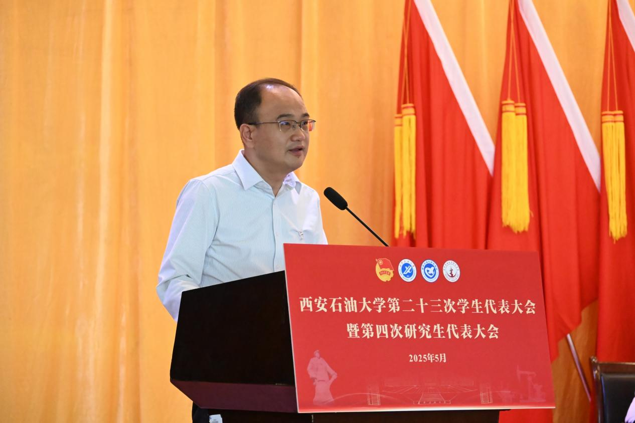 趙健代表學(xué)校黨委向大會的勝利召開表示熱烈的祝賀,向全體與會代表致以親切的問候。他指出,本次大會是在全校上下深入學(xué)習(xí)貫徹黨的二十大和二十屆二中、三中全會精神,認真落實學(xué)校第三次黨代會決策部署,奮力譜寫學(xué)校高質(zhì)量發(fā)展新篇章的關(guān)鍵時期召開的一次青春盛會,是全校廣大青年學(xué)生政治生活的一件大事。他充分肯定了全校各級學(xué)生會組織過去一年以來的工作,對大家的努力工作和辛苦付出表示感謝。他就做好下一步工作,向我校各級學(xué)生會組織提出三點要求:一是高舉偉大旗幟,強化思想引領(lǐng),堅定聽黨話、跟黨走的政治信念。要始終堅持以習(xí)近平新時代中國特色社會主義思想為指導(dǎo),弘揚偉大愛國主義精神,樹立正確的價值觀、奮斗觀和成才觀,引領(lǐng)廣大青年學(xué)子深刻領(lǐng)悟“兩個確立”的決定性意義,增強“四個意識”、堅定“四個自信”,自覺做到“兩個維護”;二是聚焦同學(xué)關(guān)切,搭建成長平臺,打造有溫度、有活力的學(xué)生組織。要牢記“全心全意為同學(xué)服務(wù)”的宗旨,主動適應(yīng)學(xué)生會改革新形勢,充分發(fā)揮貼近同學(xué)、覆蓋廣泛的組織優(yōu)勢,傾聽同學(xué)心聲,解決實際問題,做到常態(tài)化了解反映同學(xué)思想動態(tài)、普遍需求、急難愁盼;三是持續(xù)深化改革,加強自身建設(shè),彰顯作風(fēng)硬、善作為的青春擔(dān)當(dāng)。要持續(xù)鞏固改革成果,自覺對標全面從嚴治黨、全面從嚴治團要求,持續(xù)深入推進從嚴治會,著力打造出一支“鐵人式”學(xué)生會組織干部隊伍,加強內(nèi)部建設(shè),完善制度規(guī)范,提升工作效率,真正成為同學(xué)們信賴的“自家人”。他通過參會的學(xué)生代表,向全校青年學(xué)子提出三點希望:一是磨煉“勇攀高峰”的銳氣,以堅定者的姿態(tài)勇做新時代的弄潮兒。希望同學(xué)們擁有追求卓越的志氣、奮進一流的心氣、蓬勃向上的朝氣,要立志民族復(fù)興,正確處理理想和現(xiàn)實、主義和問題、利己和利他、小我和大我、民族和世界的關(guān)系,將個人努力奮斗的“小目標”融入民族復(fù)興的“大藍圖”,奮筆書寫青春的光榮答卷;二是增強“自找苦吃”的勇氣,以奮進者的姿態(tài)勇做新時代的引領(lǐng)者。同學(xué)們要以好學(xué)力行創(chuàng)造更多強起來的機會,努力擔(dān)當(dāng)作為,以自強不息拓展更大的空間,融入發(fā)展大局,爭做崇學(xué)向上、知行合一的青年實干家,用自身的成長歷程、精神追求、模范行動彰顯西石大學(xué)子的優(yōu)秀品質(zhì);三是涵養(yǎng)“挺膺擔(dān)當(dāng)”的底氣,以搏擊者的姿態(tài)勇做新時代的追夢人。大家要自覺用黨的創(chuàng)新理論武裝頭腦,厚植對黨的信賴、對中國特色社會主義的信心,用腳步丈量祖國大地,用眼睛發(fā)現(xiàn)中國精神,用耳朵傾聽人民呼聲,用內(nèi)心感應(yīng)時代脈搏,在融入中心中體現(xiàn)責(zé)任擔(dān)當(dāng),努力踐行“請黨放心,強國有我”的錚錚誓言。