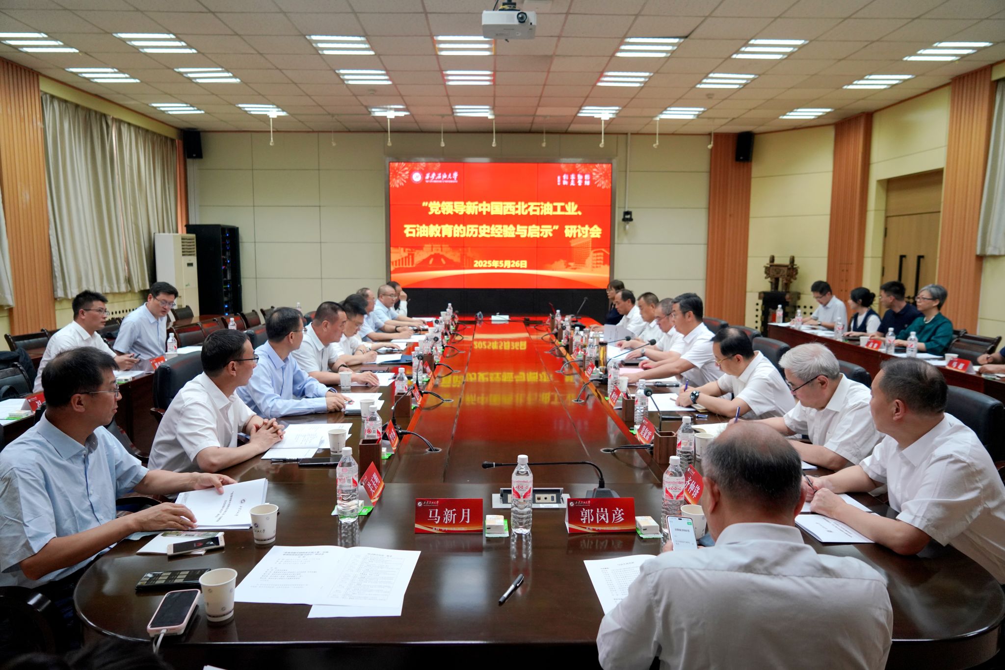 5月26日,學(xué)校在雁塔校區(qū)第二會議室隆重舉辦“黨領(lǐng)導(dǎo)新中國西北石油工業(yè)、石油教育的歷史經(jīng)驗與啟示”研討會。中國石油天然氣集團有限公司檔案館副館長韓劍鋒,陜西省檔案館編研處處長羅維央,中國石油長慶油田公司黨委宣傳部部長盧賢瑞、檔案館館長文才斌,中國石油新疆油田公司黨委宣傳部部長范大平,中國石油青海油田公司黨委宣傳部部長高哲鵬,中國石油玉門油田公司黨委宣傳部部長肖生科,中國石油獨山子石化公司黨群工作部副部長張朝君,中國石油西北銷售公司高級專家關(guān)玉明,陜西延長石油(集團)有限責(zé)任公司黨委宣傳部副部長馬新月,以及各有關(guān)油田單位企業(yè)文化宣傳、統(tǒng)戰(zhàn)工作負責(zé)人等出席會議。我校黨委書記常江、校長王進富、黨委副書記程永清,黨委辦公室(校長辦公室)、組織部、宣傳部、統(tǒng)戰(zhàn)部、檔案館(西安石油大學(xué)鐵人精神研究中心)等部門負責(zé)人,專家學(xué)者、師生代表參加會議。會議由王進富主持。