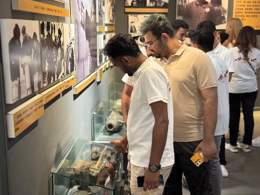 下午,師生們前往八路軍東渡黃河舊址和司馬遷祠參觀學(xué)習(xí)。在八路軍東渡黃河紀(jì)念展館,展柜中陳列的戰(zhàn)士們使用過的槍械、衣物、信件等物品,真實(shí)再現(xiàn)了那段艱苦卓絕的抗戰(zhàn)歲月。留學(xué)生們被中國共產(chǎn)黨領(lǐng)導(dǎo)下的人民軍隊英勇無畏、舍生忘死的精神深深震撼,表示此次參觀加深了他們對中國近現(xiàn)代史的理解,并對中國人民面對外敵入侵時展現(xiàn)的堅強(qiáng)意志和不屈精神深感敬佩。