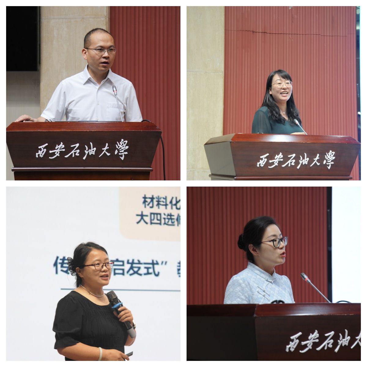 在石油高校教育教學創(chuàng)新論壇環(huán)節(jié),西北工業(yè)大學張磊磊、中國石油大學(華東)甄玉花、東北石油大學顏冰、西南石油大學傅晶晶四位專家分別圍繞“激發(fā)興趣與啟發(fā)思考的課程思政創(chuàng)新設計”、“共筑材料故事,打造三有課堂—國家一流課程‘材料物理”課程建設談’、“紓解課程思政建設問題,解碼價值塑造的隱形路徑”、“新文科課程思政團隊建設經(jīng)驗”等主題作了前沿而務實的報告,分享了寶貴的實踐經(jīng)驗與創(chuàng)新理念,為深化石油特色課程思政建設提供了新思路和新路徑,也為我校教師帶來了深刻啟發(fā)。