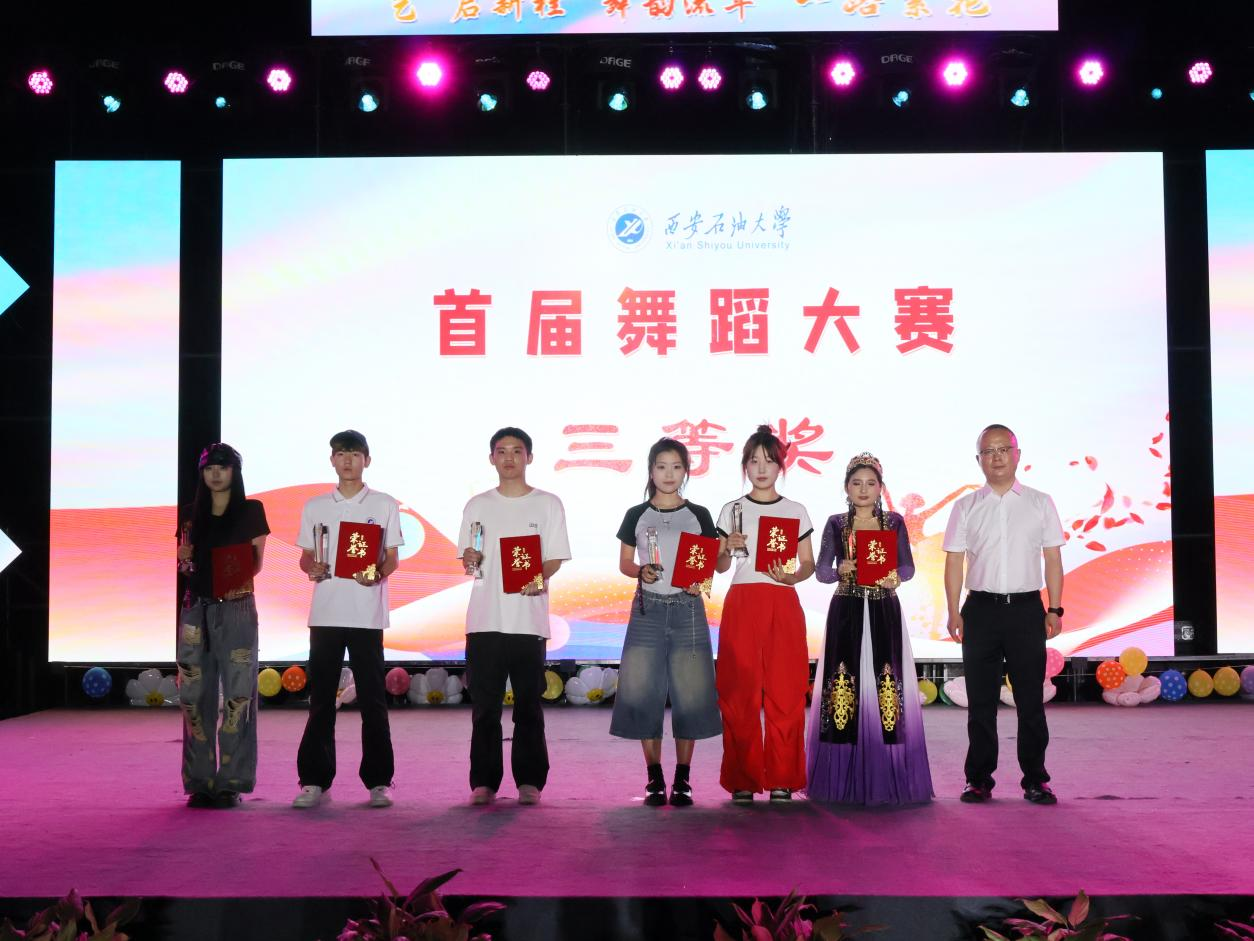 經評委評審,外國語學院《消失》、音樂系《新時代石油接班人》獲一等獎;機械工程學院《牽絲戲》、人文學院《路西法》、外國語學院《Go Girl》、預科班《石榴之花》獲二等獎;計算機學院《無需揚鞭自奮蹄》、人文學院《麥西萊普》、電子工程學院《Diamond》、石油工程學院《Keep on popping》、地球科學與工程學院《Cheer up》、體育學院《We rock》獲三等獎。與會領導為獲獎隊伍頒獎。