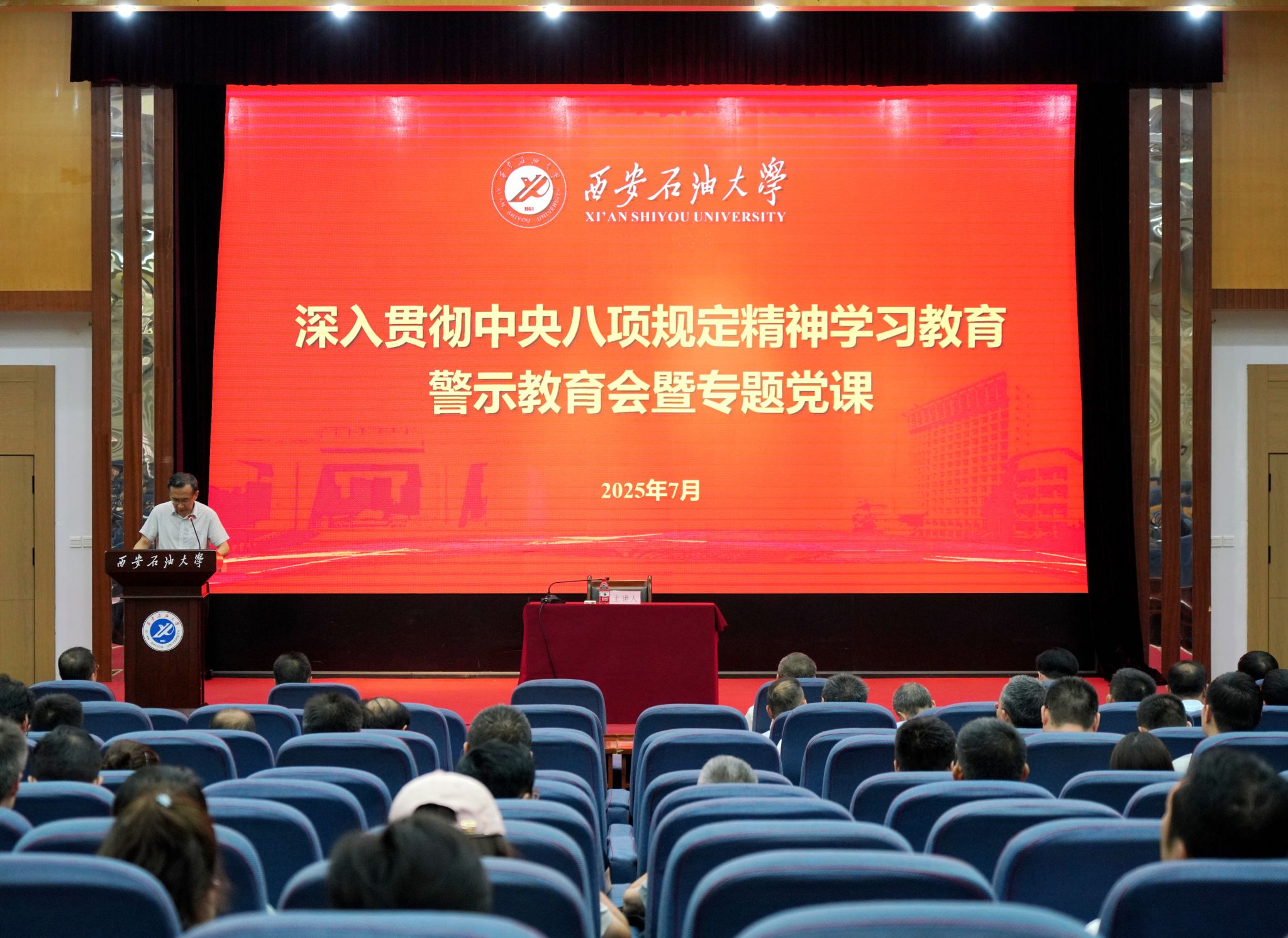 7月9日,學(xué)校召開深入貫徹中央八項(xiàng)規(guī)定精神學(xué)習(xí)教育警示教育大會暨專題黨課,學(xué)習(xí)習(xí)近平總書記關(guān)于加強(qiáng)黨的作風(fēng)建設(shè)的重要論述和中央、省委關(guān)于學(xué)習(xí)教育的最新安排部署,集中觀看警示教育片《鐵規(guī)矩硬杠杠》。校黨委書記常江講授專題黨課,校黨委副書記、紀(jì)委書記、監(jiān)察專員王輝強(qiáng)通報違反中央八項(xiàng)規(guī)定及其實(shí)施細(xì)則精神典型案例,校黨委副書記張木主持會議。
