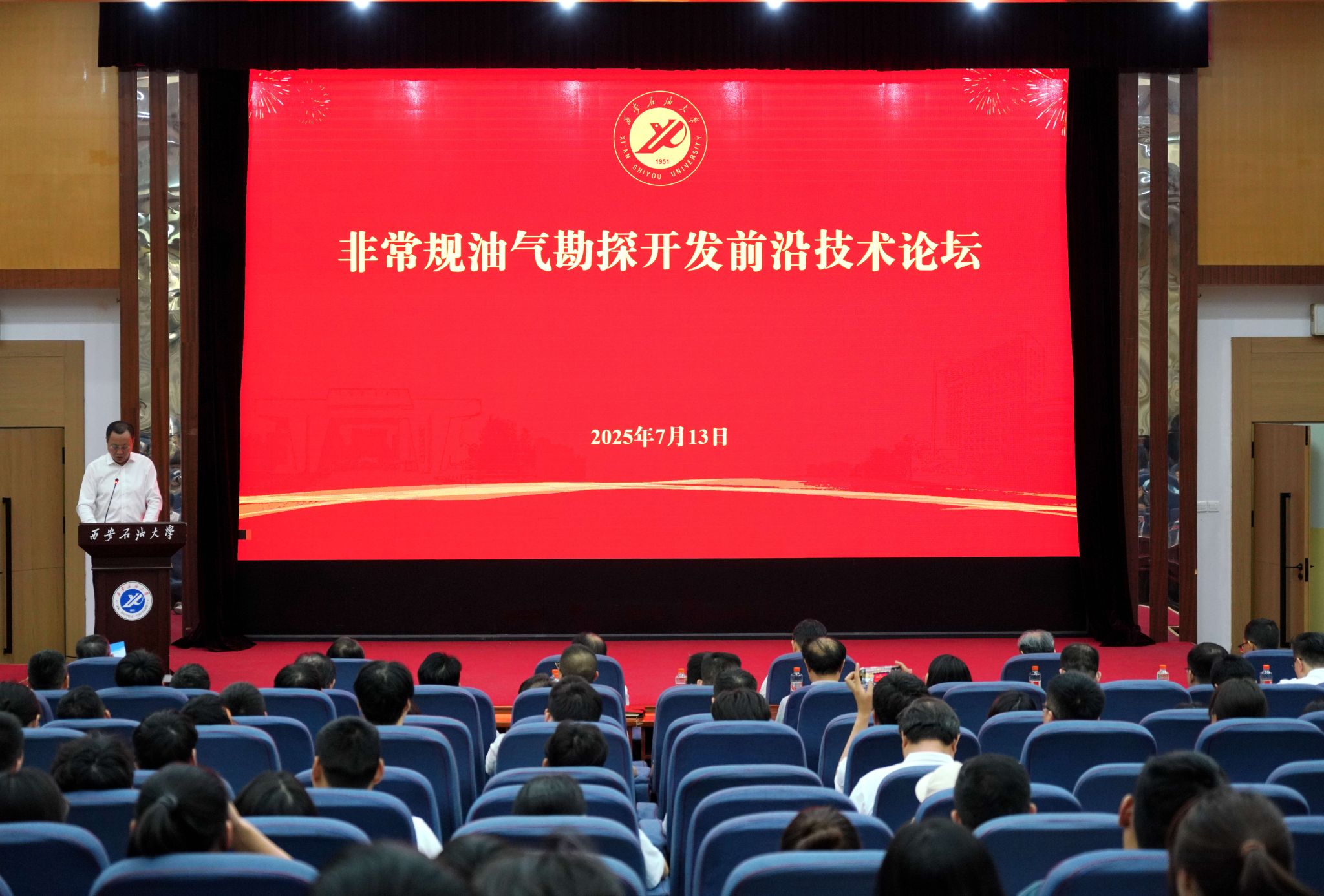 開(kāi)幕式上,王進(jìn)富代表學(xué)校致歡迎辭。他向蒞臨論壇的各位專(zhuān)家學(xué)者表示熱烈歡迎和崇高敬意。他談到,西安石油大學(xué)長(zhǎng)期扎根西部,堅(jiān)持服務(wù)鄂爾多斯盆地,始終與國(guó)家能源戰(zhàn)略同頻共振,在非常規(guī)油氣領(lǐng)域已構(gòu)建起從基礎(chǔ)理論研究到關(guān)鍵技術(shù)研發(fā)、工程應(yīng)用服務(wù)的完整學(xué)科鏈和科研創(chuàng)新體系。他指出,非常規(guī)油氣資源已成為保障國(guó)家能源安全的戰(zhàn)略新支點(diǎn),在“雙碳”目標(biāo)引領(lǐng)的能源轉(zhuǎn)型關(guān)鍵期,深層頁(yè)巖氣高效開(kāi)發(fā)、超低滲儲(chǔ)層經(jīng)濟(jì)有效改造等“卡脖子”難題亟待突破,人工智能、大數(shù)據(jù)等新一代信息技術(shù)對(duì)傳統(tǒng)勘探開(kāi)發(fā)模式的革新刻不容緩,本次論壇的舉辦,旨在匯聚行業(yè)智慧,以前沿技術(shù)和創(chuàng)新思維共同探索破解之道,為中國(guó)能源事業(yè)注入西石大力量。
