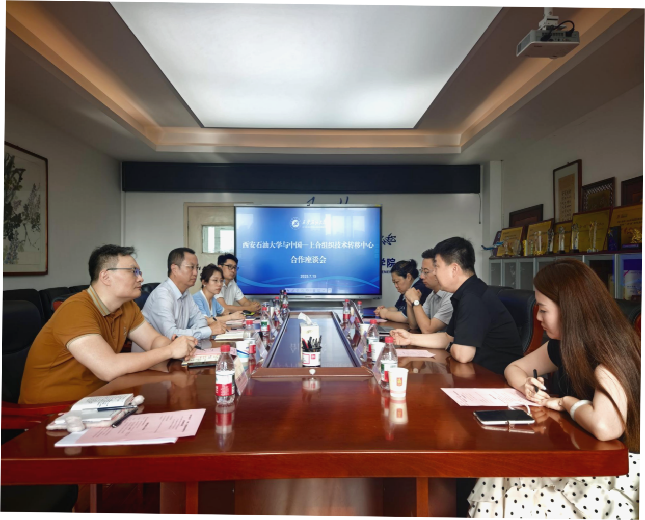 7月15日下午,中國—上合組織技術轉移中心(以下簡稱“技術轉移中心”)國際交流與合作辦主任羅一鳴,技術轉移中心西安協(xié)同中心(籌)負責人、西安曲江新區(qū)人才交流中心黨支部書記、常務副主任、中國國際人才市場西安市場副主任何小奇等一行4人來校交流座談,雙方合作座談會在雁塔校區(qū)東方石油樓801會議室舉行。校黨委委員、副校長張榮軍出席座談會。