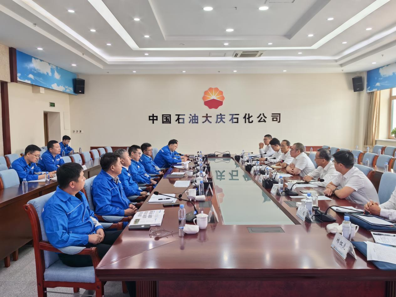 在中國石油大慶石化分公司,常江一行與公司執(zhí)行董事、黨委書記于強,副總經(jīng)理、安全總監(jiān)崔俊峰,副總經(jīng)濟師盛開等交流座談,介紹了上次到訪后學(xué)校在石油化工領(lǐng)域的科研進展,圍繞建立科研合作與人才交流長效機制、有效發(fā)揮學(xué)校智力支撐和企業(yè)場景優(yōu)勢等深入溝通交流。