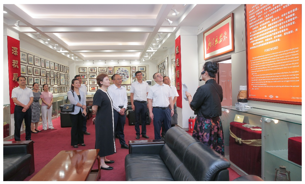 常江一行在陜西省戲曲研究院黨委書記、院長李梅陪同下,先后參觀了院劇場、院史陳列室,觀摩了《戲曲薈萃表演》,系統(tǒng)了解了研究院自1938年延安陜甘寧邊區(qū)民眾劇團(tuán)發(fā)展至今的歷程,以及在秦腔藝術(shù)傳承、劇目創(chuàng)作、人才培養(yǎng)等方面的卓越成就,切身感受到陜西戲曲藝術(shù)的深厚底蘊(yùn)與獨(dú)特魅力。