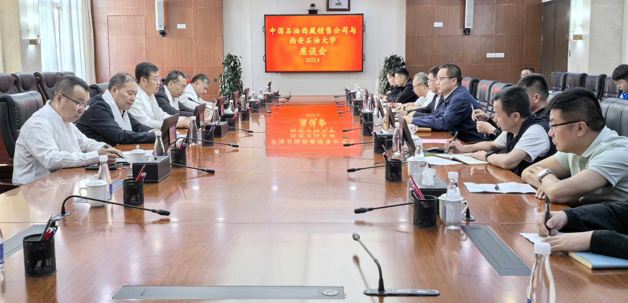 8月23日,王進富一行與中國石油西藏銷售公司(簡稱“西藏銷售”)總經(jīng)理徐啟東(財務(wù)管理1999屆校友)、副總經(jīng)理趙漢寶,青藏管道公司黨委書記李國鋒等有關(guān)負責同志座談交流。王進富對西藏銷售長期以來給予校友提供的成長和平臺表示衷心感謝。他梳理和回顧了學校歷史發(fā)展脈絡(luò),介紹了學校第三次黨代會召開以來取得的成效、形成的“三小三大三氛圍”。他指出,學校近年來堅持開放辦學,緊扣能源行業(yè)發(fā)展需求,深化產(chǎn)教融合,凝聚學校優(yōu)勢,聚焦企業(yè)需求,大力開展與行業(yè)企業(yè)的深層次合作。徐啟東對母校來訪表示歡迎和感動,對母校近年來給予公司優(yōu)秀人才的輸送表示衷心感謝,對母校近年來取得的成績表示驕傲自豪,并介紹了公司的基本情況及在高原地區(qū)的能源保供體系、清潔能源替代與數(shù)字化轉(zhuǎn)型等方面的實踐與成效。雙方均表示在人才培養(yǎng)、科學研究、營銷體系構(gòu)建、學生實習就業(yè)、員工繼續(xù)教育等方面加深合作。