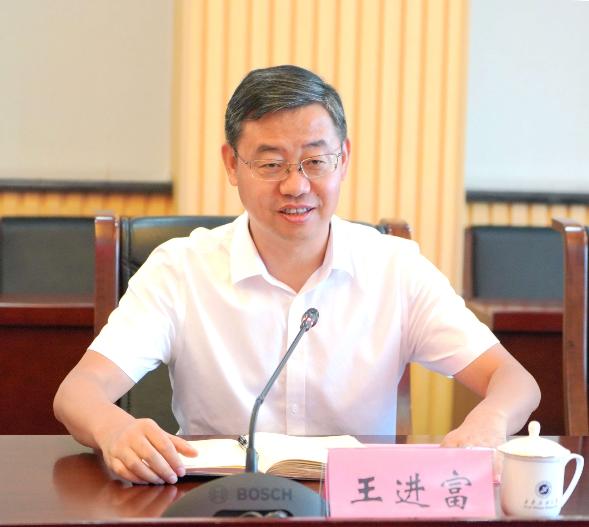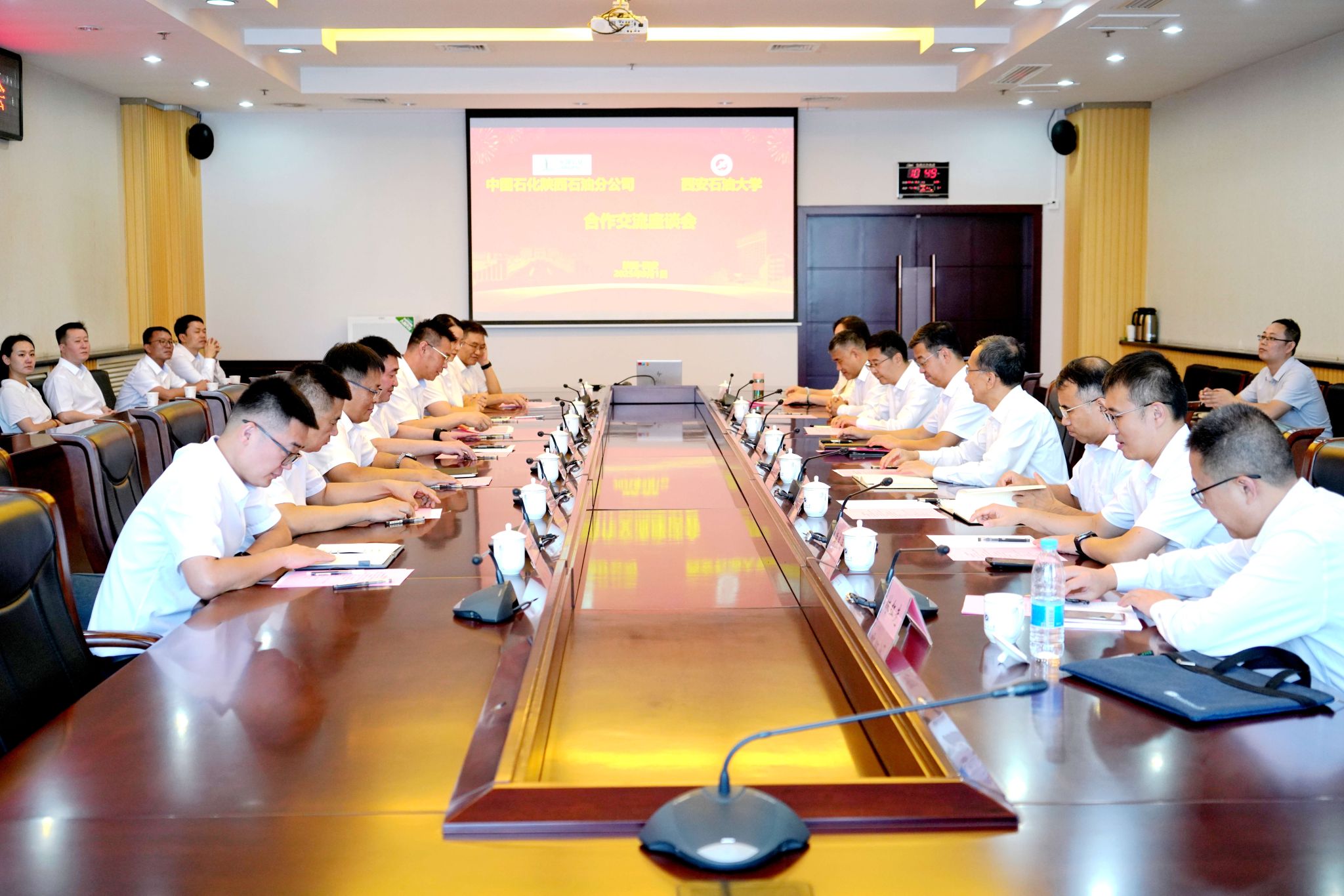 9月1日上午,中國石化陜西石油分公司總經(jīng)理、黨委副書記戴盡良一行來校交流訪問,校長王進富出席座談會并講話。座談會由校黨委副書記張木主持。