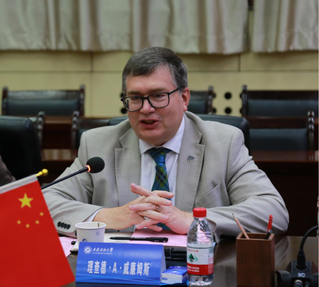 理查德?A?威廉姆斯對(duì)我校的熱情接待表示感謝,并簡(jiǎn)要介紹了赫瑞-瓦特大學(xué)的學(xué)科特色、國(guó)際校區(qū)布局及全球合作成果。他表示,推進(jìn)跨文化教育合作、培育應(yīng)對(duì)全球挑戰(zhàn)的復(fù)合型人才是兩校的共同追求,赫瑞-瓦特大學(xué)高度重視與學(xué)校的合作。他強(qiáng)調(diào),愿與學(xué)校共同細(xì)化3+1項(xiàng)目執(zhí)行方案,推動(dòng)項(xiàng)目早日落成,并期待雙方在能源、人工智能、基礎(chǔ)設(shè)施建設(shè)等領(lǐng)域加強(qiáng)跨學(xué)科科研合作,擴(kuò)大師生互訪規(guī)模等方面開(kāi)展實(shí)質(zhì)性合作。