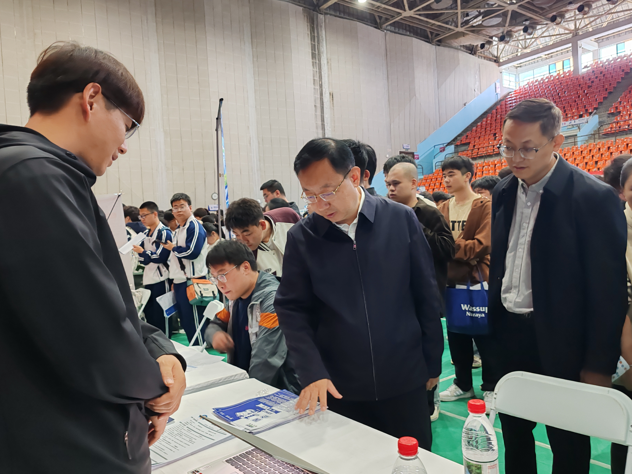 調(diào)研過(guò)程中,種宇宏逐一走訪行業(yè)重點(diǎn)用人單位展位,與企業(yè)招聘負(fù)責(zé)人及校友親切交談。他詳細(xì)詢問(wèn)企業(yè)招聘需求、崗位要求、薪資福利及行業(yè)發(fā)展情況,了解企業(yè)對(duì)我校畢業(yè)生專(zhuān)業(yè)能力、實(shí)踐素養(yǎng)的綜合評(píng)價(jià),并向企業(yè)介紹我校學(xué)科建設(shè)、人才培養(yǎng)特色及2026屆畢業(yè)生規(guī)模與專(zhuān)業(yè)分布情況。希望校企雙方以人才供需對(duì)接為窗口,進(jìn)一步深化校企合作,建立長(zhǎng)期穩(wěn)定的人才輸送與聯(lián)合培養(yǎng)機(jī)制,共同為行業(yè)發(fā)展培育優(yōu)質(zhì)人才。在與畢業(yè)生交流時(shí),他關(guān)切詢問(wèn)同學(xué)們的求職意向、目標(biāo)崗位及面試進(jìn)展,傾聽(tīng)大家在求職過(guò)程中遇到的困惑與需求。他叮囑同學(xué)們要結(jié)合自身專(zhuān)業(yè)優(yōu)勢(shì)與職業(yè)規(guī)劃,理性選擇崗位,主動(dòng)與用人單位溝通,同時(shí)鼓勵(lì)廣大畢業(yè)生到西部去、到基層去,到祖國(guó)最需要的地方建功立業(yè),強(qiáng)調(diào)要樹(shù)立“先就業(yè)、再擇業(yè)”的正確就業(yè)觀,積極把握就業(yè)機(jī)遇,在統(tǒng)籌社會(huì)價(jià)值的過(guò)程中實(shí)現(xiàn)個(gè)人價(jià)值。