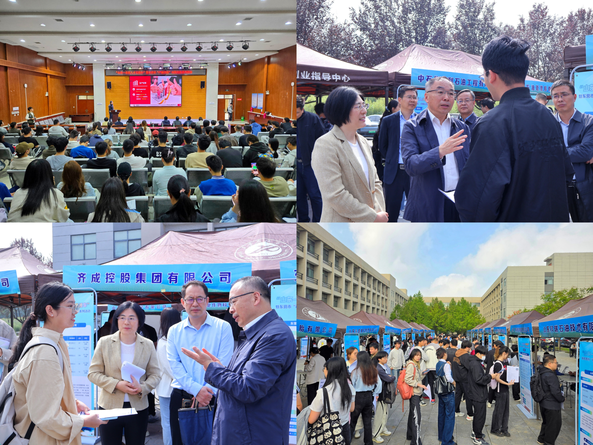 與此同時(shí),東營(yíng)市組團(tuán)專場(chǎng)招聘會(huì)在崇文樓118報(bào)告廳和江漢林廣場(chǎng)同步開展,東營(yíng)市公共就業(yè)和人才服務(wù)中心副主任朱鳳鸞詳細(xì)介紹了當(dāng)?shù)厝瞬虐l(fā)展環(huán)境、住房補(bǔ)貼、就業(yè)扶持等優(yōu)惠政策。多家重點(diǎn)企業(yè)代表圍繞企業(yè)主營(yíng)業(yè)務(wù)、崗位需求、發(fā)展前景等內(nèi)容進(jìn)行宣講,現(xiàn)場(chǎng)解答學(xué)生關(guān)于職業(yè)規(guī)劃、崗位要求等疑問,吸引兩百余名畢業(yè)生到場(chǎng)聆聽,為畢業(yè)生與企業(yè)搭建起直接溝通的橋梁。宣講會(huì)后,省市領(lǐng)導(dǎo)在學(xué)校相關(guān)負(fù)責(zé)人陪同下前往招聘現(xiàn)場(chǎng),實(shí)地查看畢業(yè)生求職情況?,F(xiàn)場(chǎng)氣氛熱烈,畢業(yè)生們積極與企業(yè)招聘人員交流,圍繞崗位專業(yè)要求、薪資待遇、職業(yè)發(fā)展空間等問題深入咨詢,部分學(xué)生與企業(yè)初步達(dá)成就業(yè)意向。隨后,校地雙方領(lǐng)導(dǎo)參觀我校校史館及鐵人王進(jìn)喜紀(jì)念館,通過歷史圖片、實(shí)物展品與文字介紹,全面了解我校的發(fā)展歷程、辦學(xué)成就與人才培養(yǎng)特色,對(duì)我校長(zhǎng)期扎根能源領(lǐng)域、為國(guó)家能源事業(yè)發(fā)展作出的貢獻(xiàn)給予高度評(píng)價(jià)。