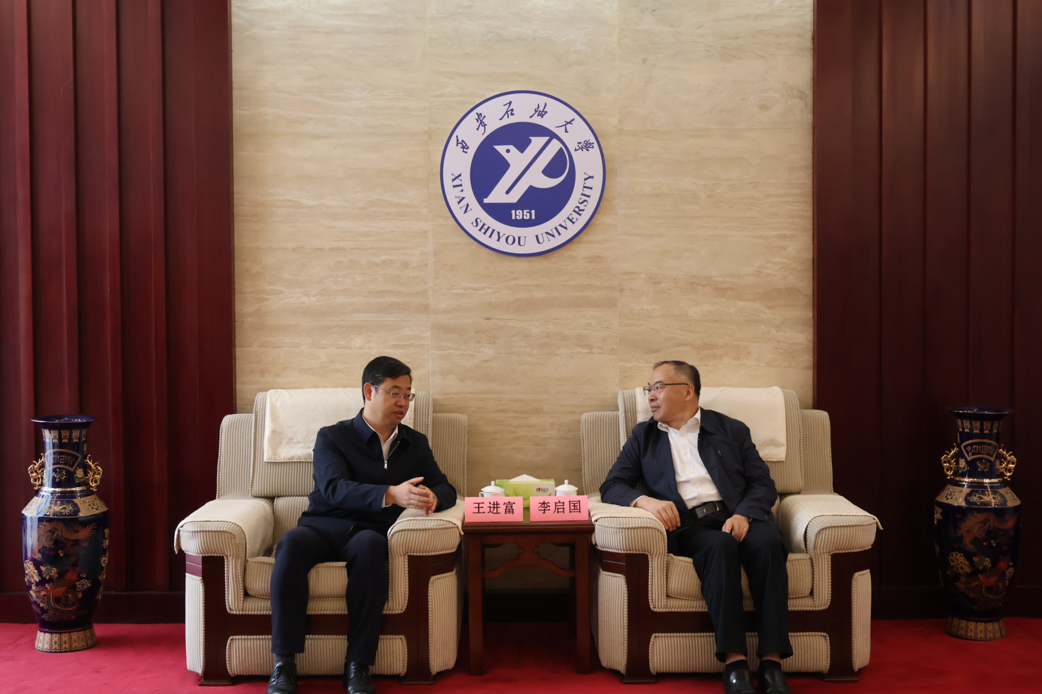 9月25日上午,“山東—名校人才直通車”暨東營(yíng)市“產(chǎn)融百?!睂?duì)接交流系列活動(dòng)在我校鄠邑校區(qū)舉辦。山東省公共就業(yè)和人才服務(wù)中心副廳級(jí)干部李啟國(guó)、東營(yíng)市人力資源和社會(huì)保障局黨組成員、市公共就業(yè)和人才服務(wù)中心主任李長(zhǎng)林等省市領(lǐng)導(dǎo)參加活動(dòng)。校長(zhǎng)王進(jìn)富在圖書館接待室會(huì)見李啟國(guó)一行,向山東省、東營(yíng)市人社部門對(duì)學(xué)校發(fā)展給予的支持表示感謝,并預(yù)?;顒?dòng)圓滿舉行。校黨委委員、副校長(zhǎng)張君濤出席相關(guān)活動(dòng)。我校學(xué)生工作部(處)(就業(yè)創(chuàng)業(yè)指導(dǎo)中心)、科研處、校友工作與合作交流處相關(guān)負(fù)責(zé)人陪同參加。